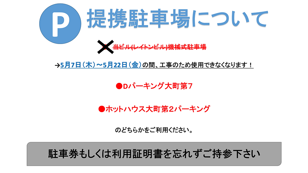 期間中、お車で来院される場合は、Dパーキング大町第7をご利用いただくようになります。